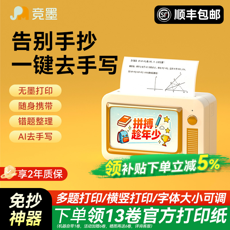 【政府补贴】竞墨MC-T错题机超清宽幅迷你小型家用学习小学初高中生便携式打印机整理错题免抄神器喵喵机手机