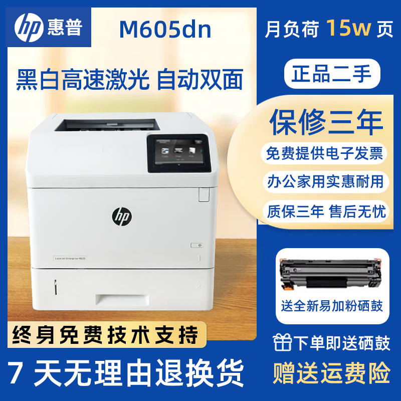 惠普激光打印机M506dn/M605/M608黑白hp高速自动双面家用商务办公