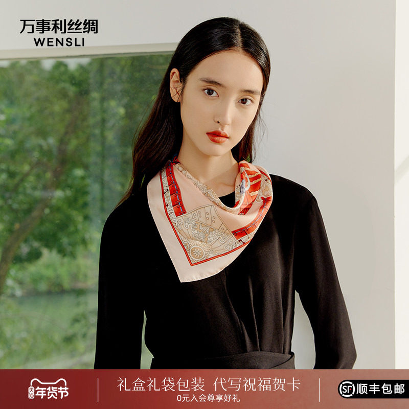 万事利真丝丝巾女百搭小丝巾桑蚕丝领巾搭配衬衫礼物小方巾木兰辞