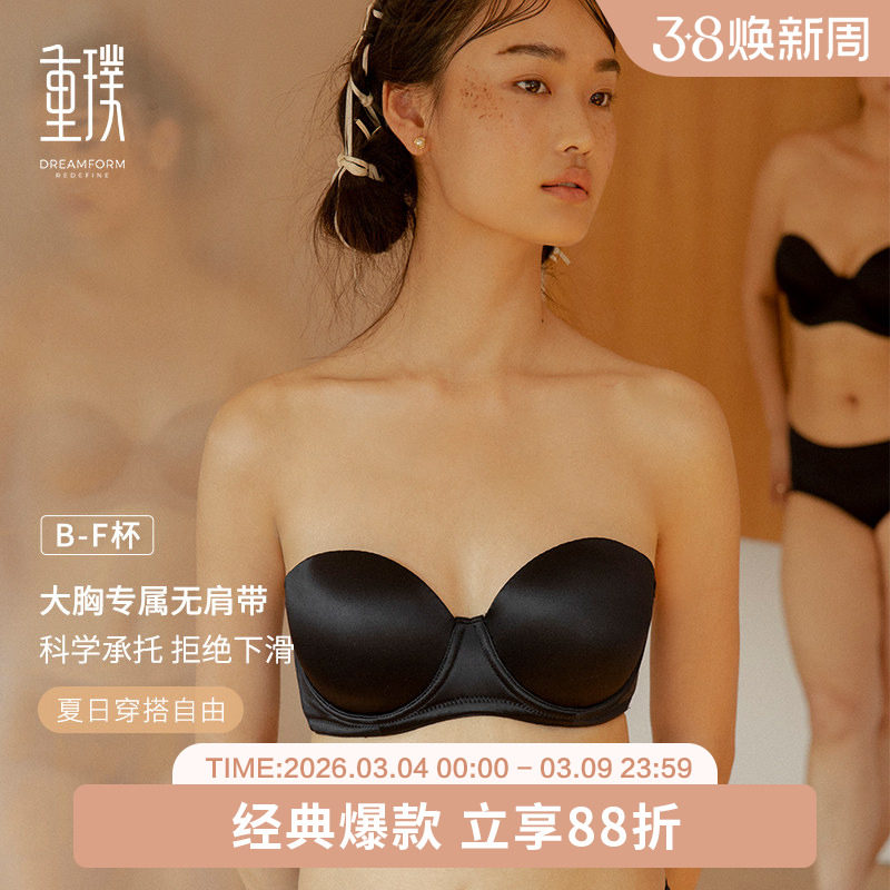 重璞冰糕凉感防滑无肩带内衣光面大胸文胸上托收副乳立体圆润胸型