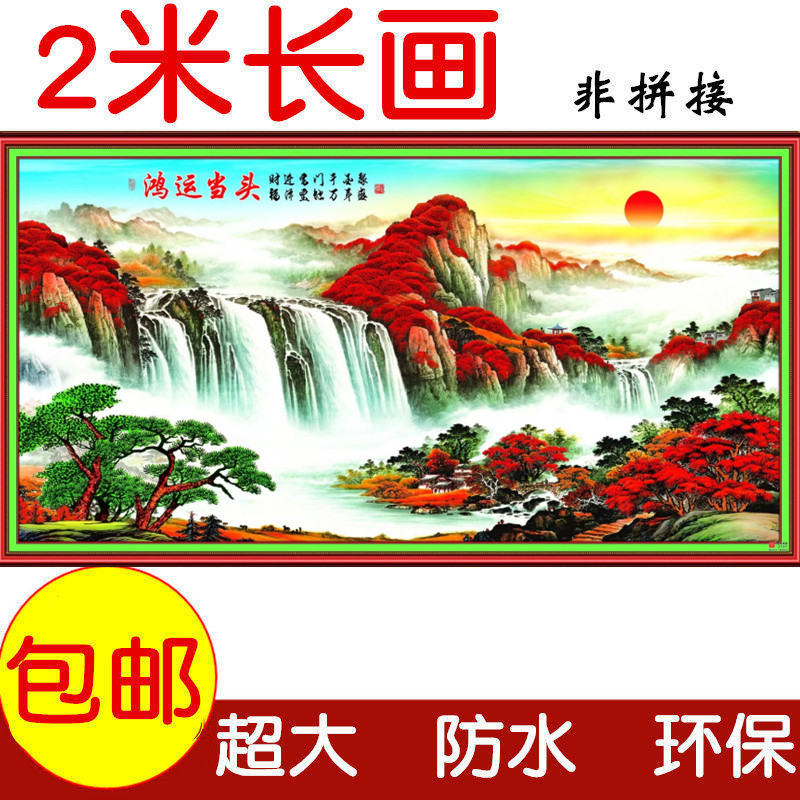 瀑布山水风景客厅年画墙画装饰喜庆纸画财源滚滚来贴图包邮风水图