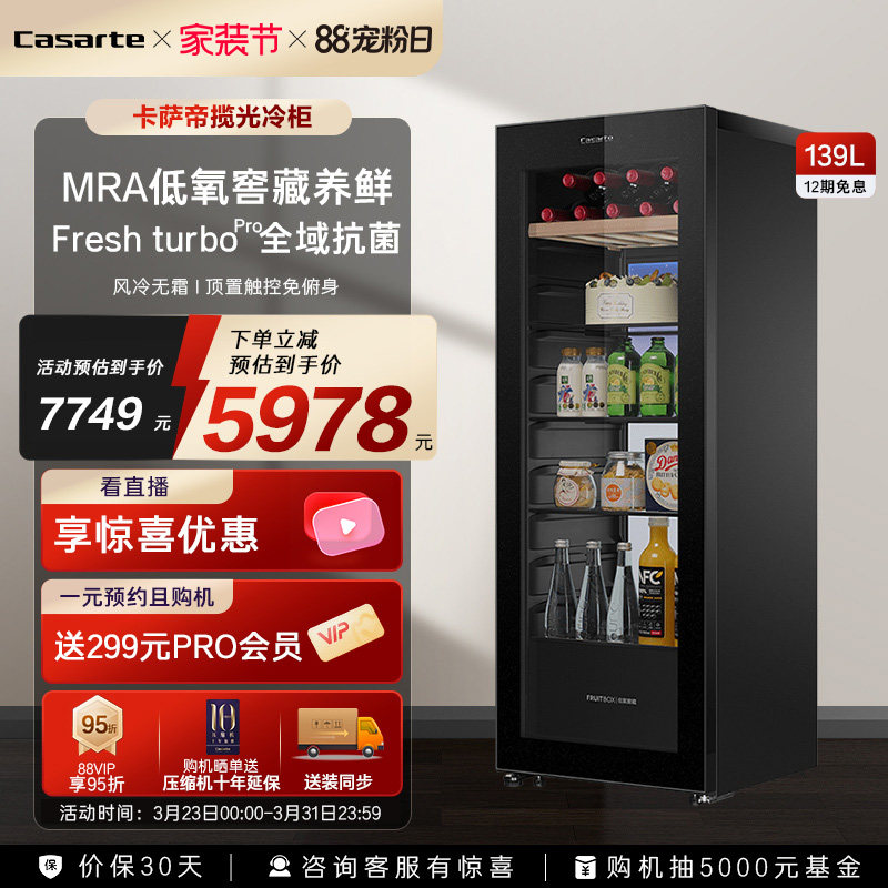卡萨帝揽光冷柜139L家用客厅冰吧小型饮料冷柜一级冷藏冰柜冰箱