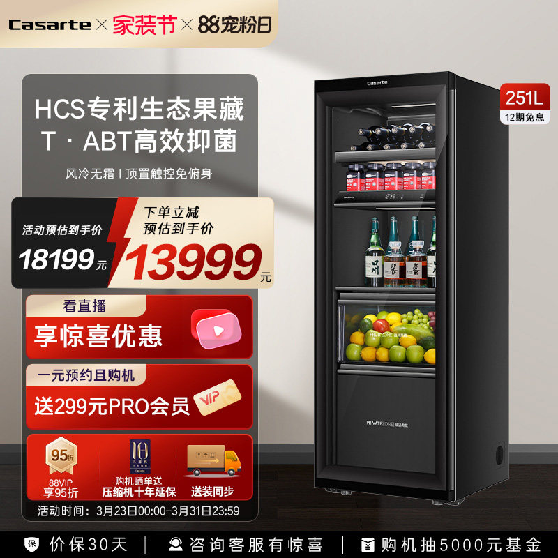 卡萨帝251升原创平嵌冰吧大容量客厅冰箱嵌入式冷藏柜茶叶饮料柜