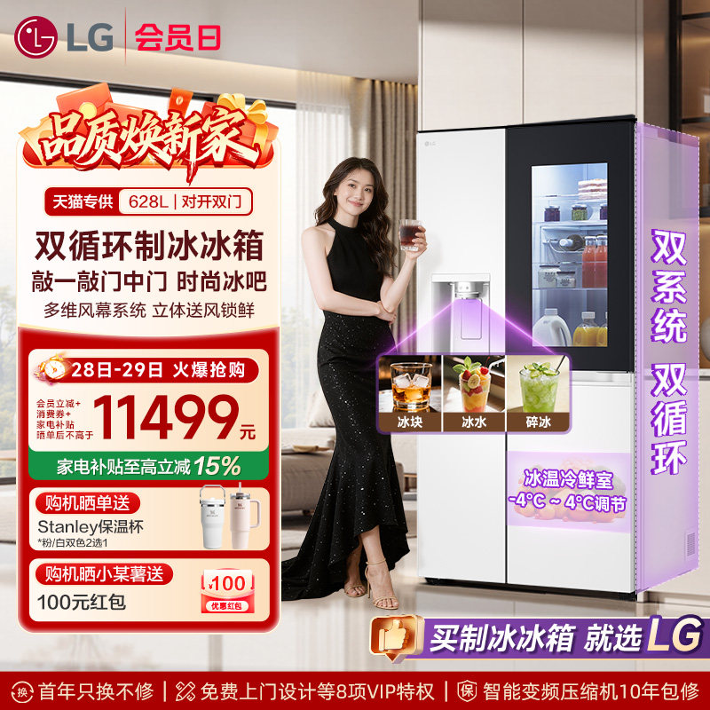 【LG双循环制冰冰箱】628L敲一敲门中门客厅冰吧双开家用冰箱 94A