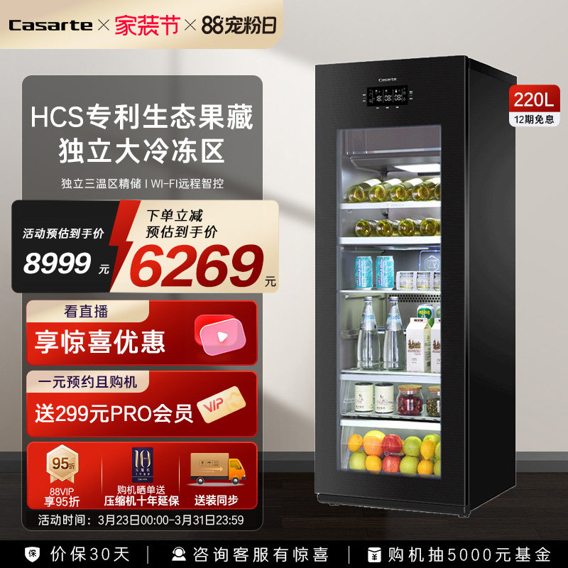 卡萨帝220升家用客厅冰吧茶叶柜冷冻制冰办公室红酒柜冷藏饮料柜