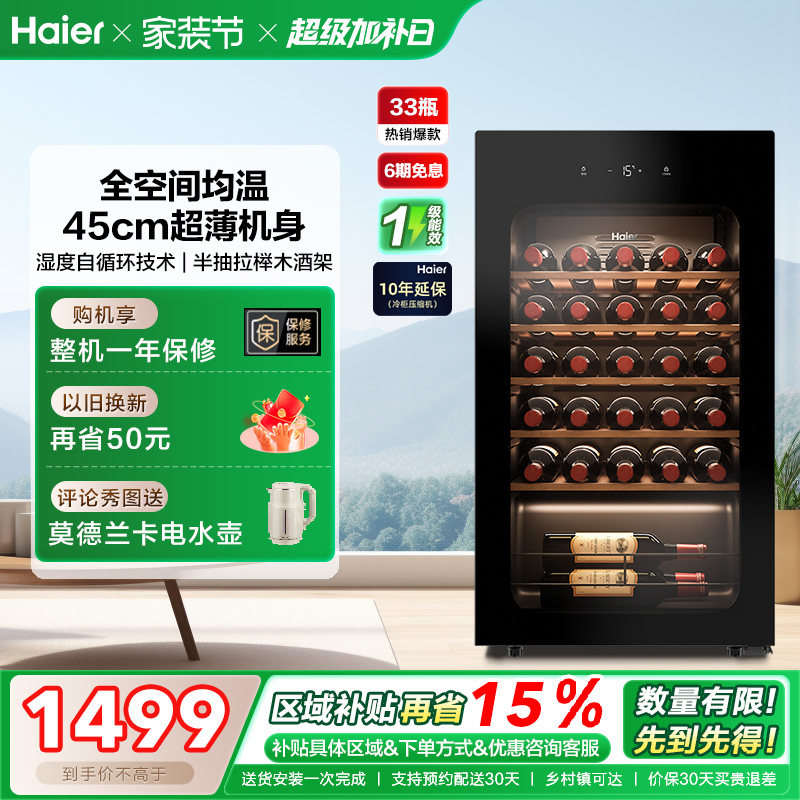 海尔酒柜90/150/196/378升冷藏恒温酒窖超薄高端家用客厅茶叶冰吧
