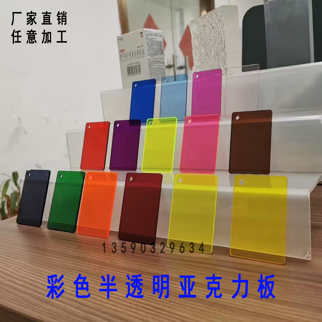 彩色半透明亚克力板加工 有机玻璃蓝红黄绿橙茶色UV热弯切割定制