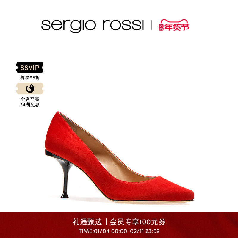 Sergio Rossi塞乔罗西/srMILANO绒面尖头细跟高跟鞋婚鞋