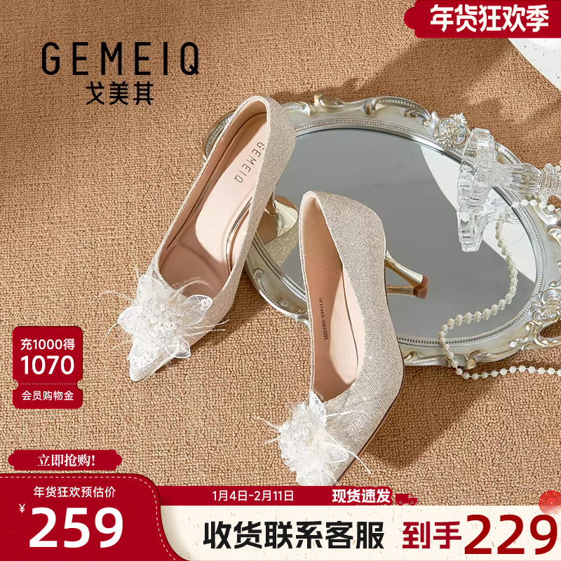 戈美其商场同款尖头细跟高跟鞋女2026年春季禾秀新娘鞋不累脚婚鞋