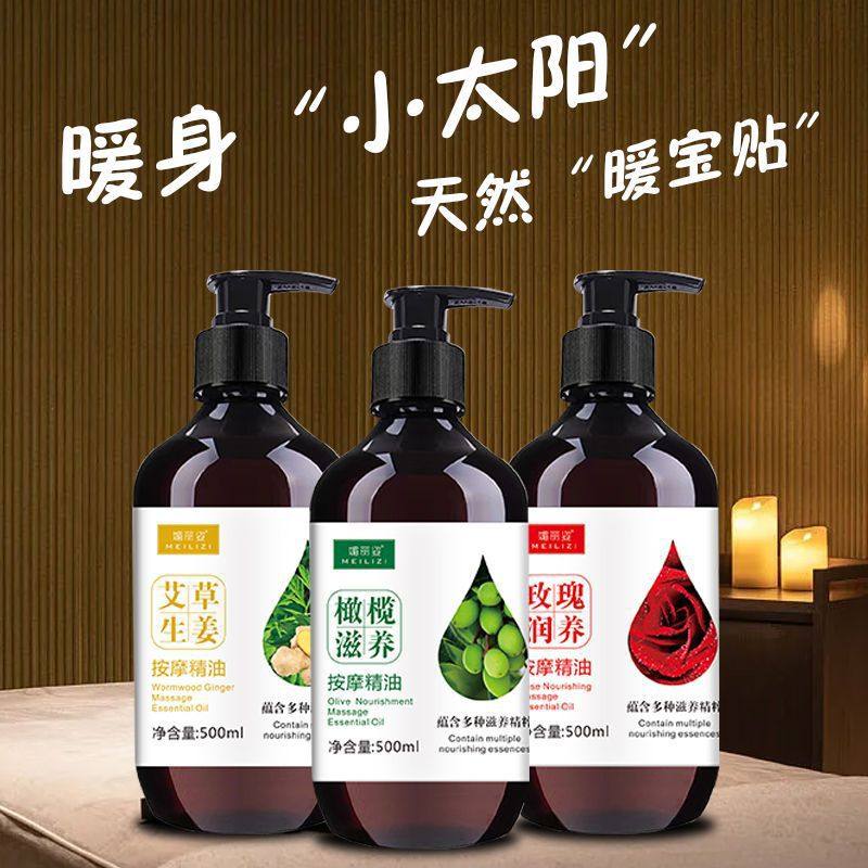 500ml艾草生姜按摩精油 全身肩颈通经络发热精油开背刮痧老姜推油