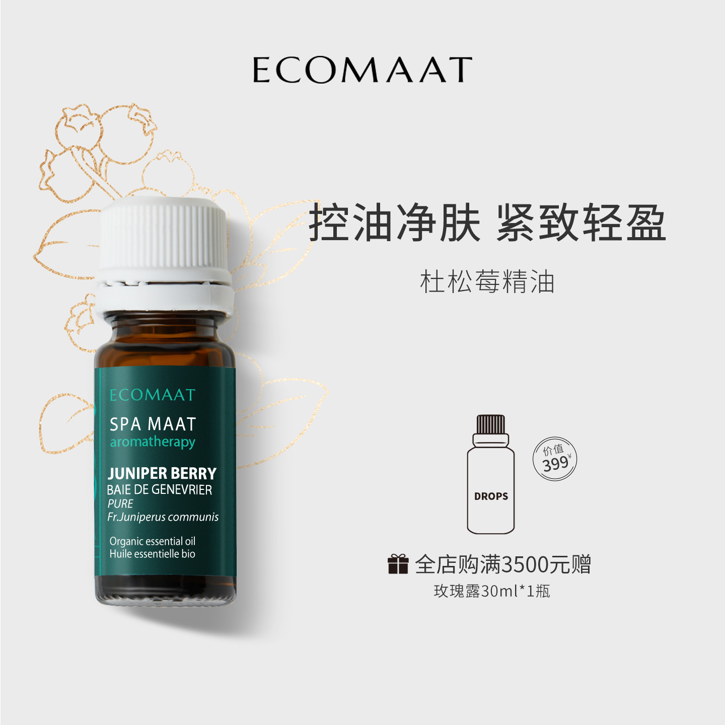 ECOMAAT伊可茉杜松莓面部按摩精油 全身免洗刮痧植物护肤护理精油