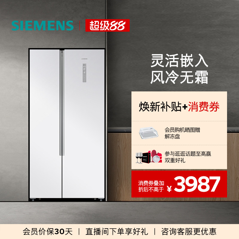【超薄嵌入】西门子官方超薄501L对开门家用大容量风冷无霜冰箱