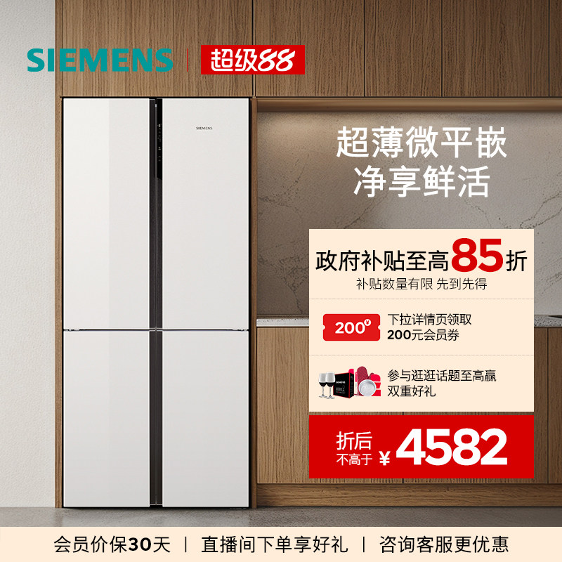 【镇店爆款】西门子超薄十字星497L玻璃四门嵌入式冰箱一级能效
