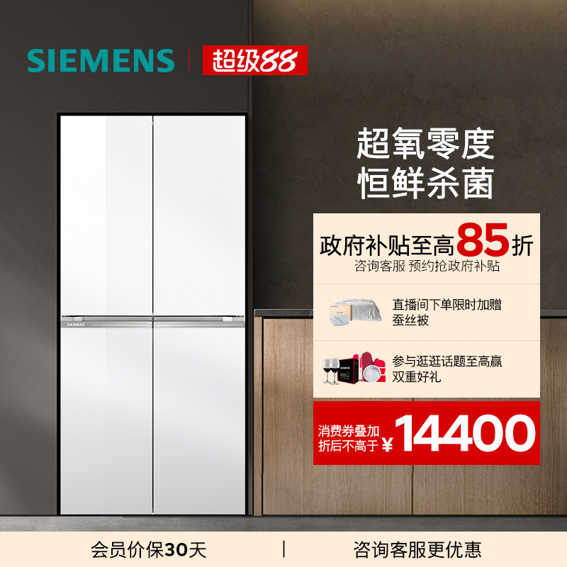 新品西门子KC88BEA63C 零嵌十字门无霜冰箱558L智能抗冷凝 玻璃门