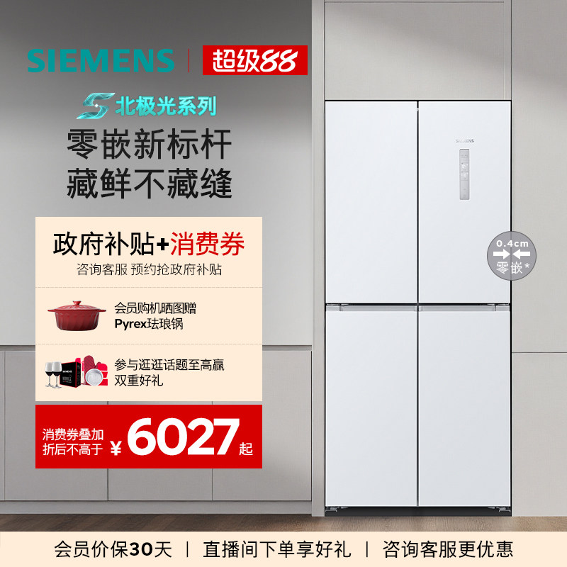 【官方旗舰店】西门子新品503L无界零嵌十字门冰箱一级能效1320C