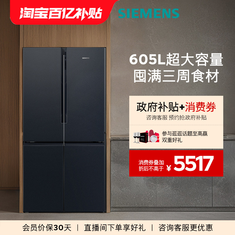 西门子605L四门对开双开门家用冰箱官方旗舰店一级能效大容量1549