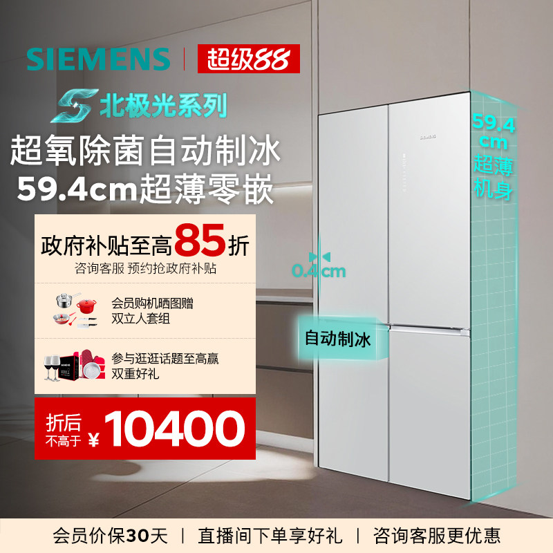 新品西门子KC88EA420C无界超薄零嵌入十字开门玻璃门电冰箱503L
