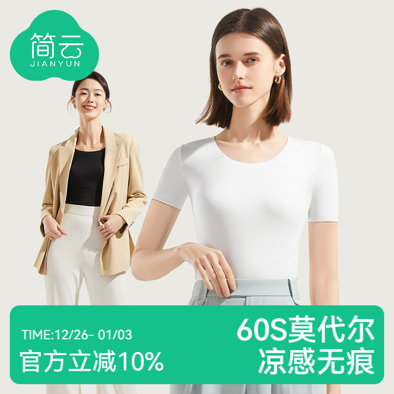 简云莫代尔无痕短袖t恤女夏季内搭薄款冰丝半袖打底衫2025年新款