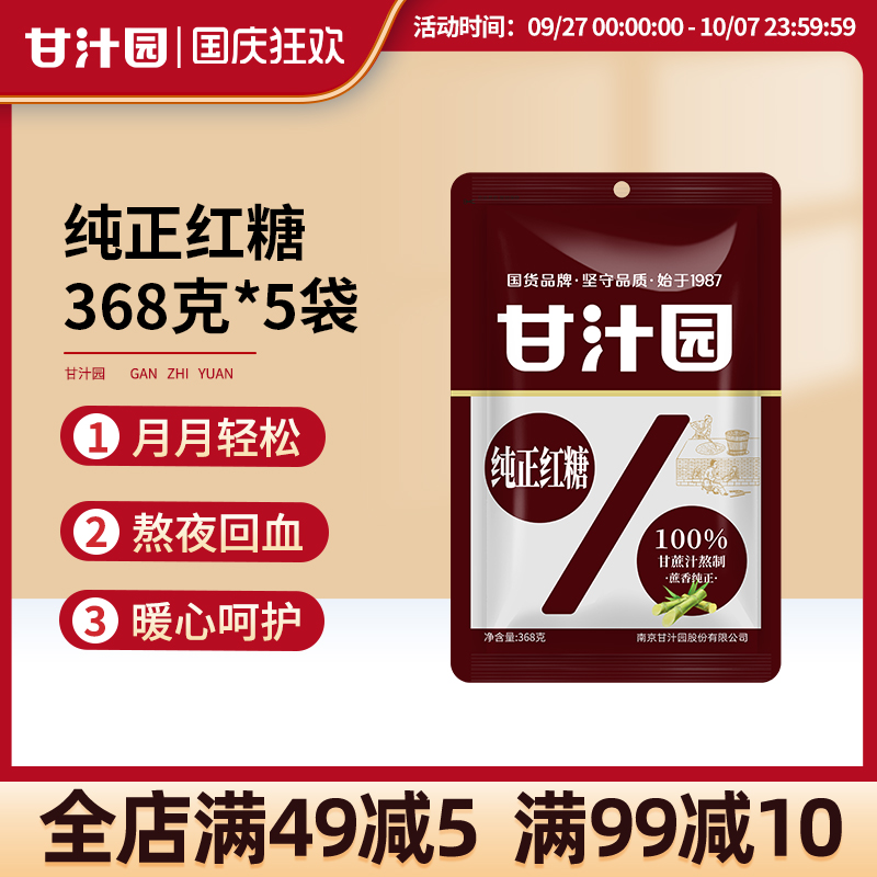 甘汁园纯正红糖纯甘蔗熬制大姨妈产妇坐月子红糖水气血黑糖368g*5