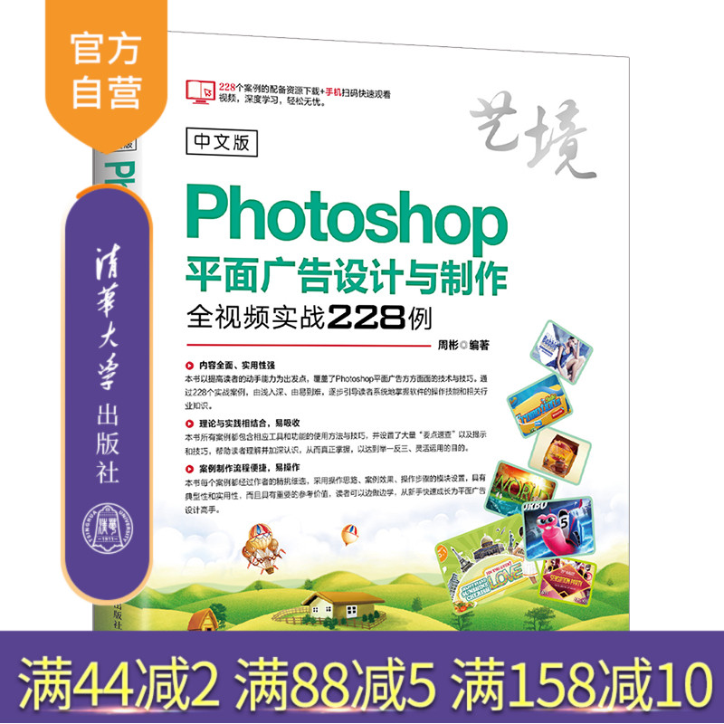 【官方正版】 中文版Photoshop平面广告设计与制作全视频实战228例 清华大学出版社 中文版Photoshop平面广告设计 周彬 艺境