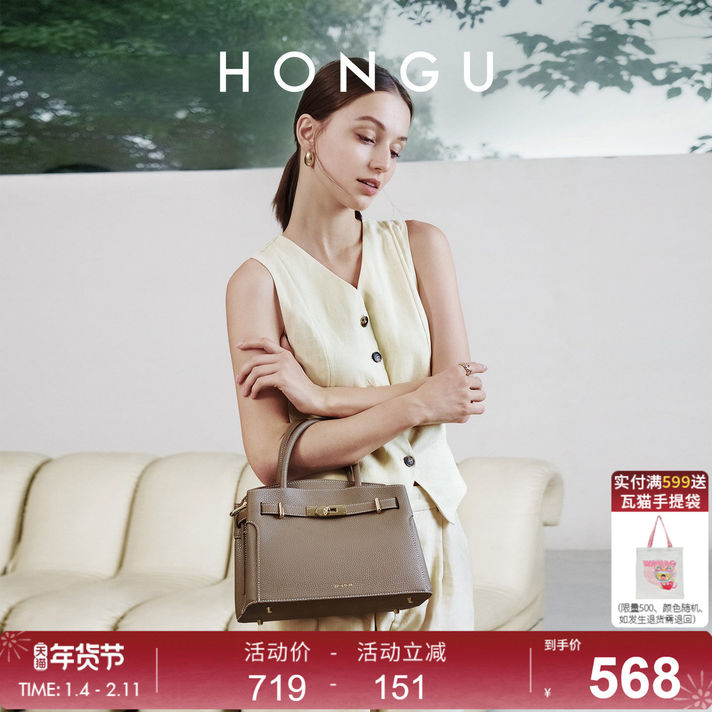 红谷包包女新款高级感通勤牛皮单肩手拎包大容量手提包妈妈女士包