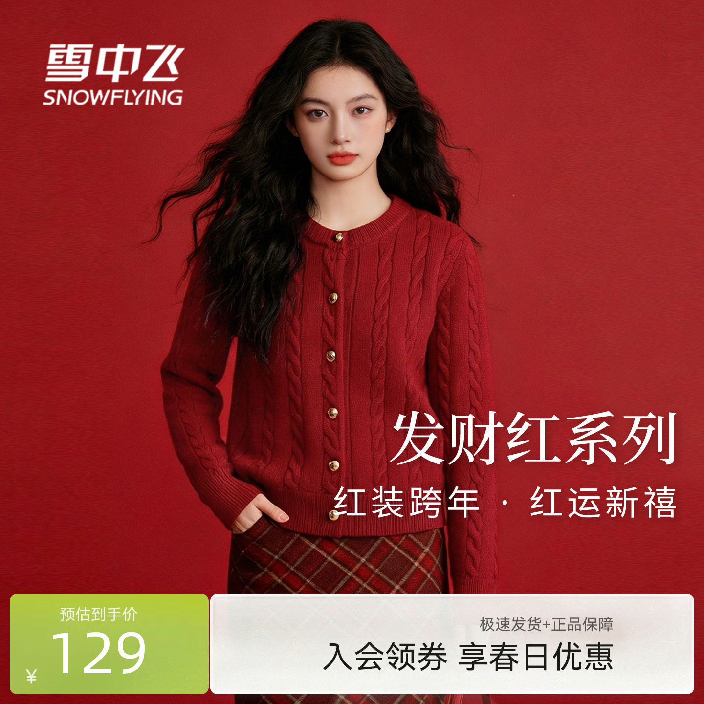雪中飞红色毛衣开衫女春装2026含绵羊毛新年拜年服本命马年衣服PC