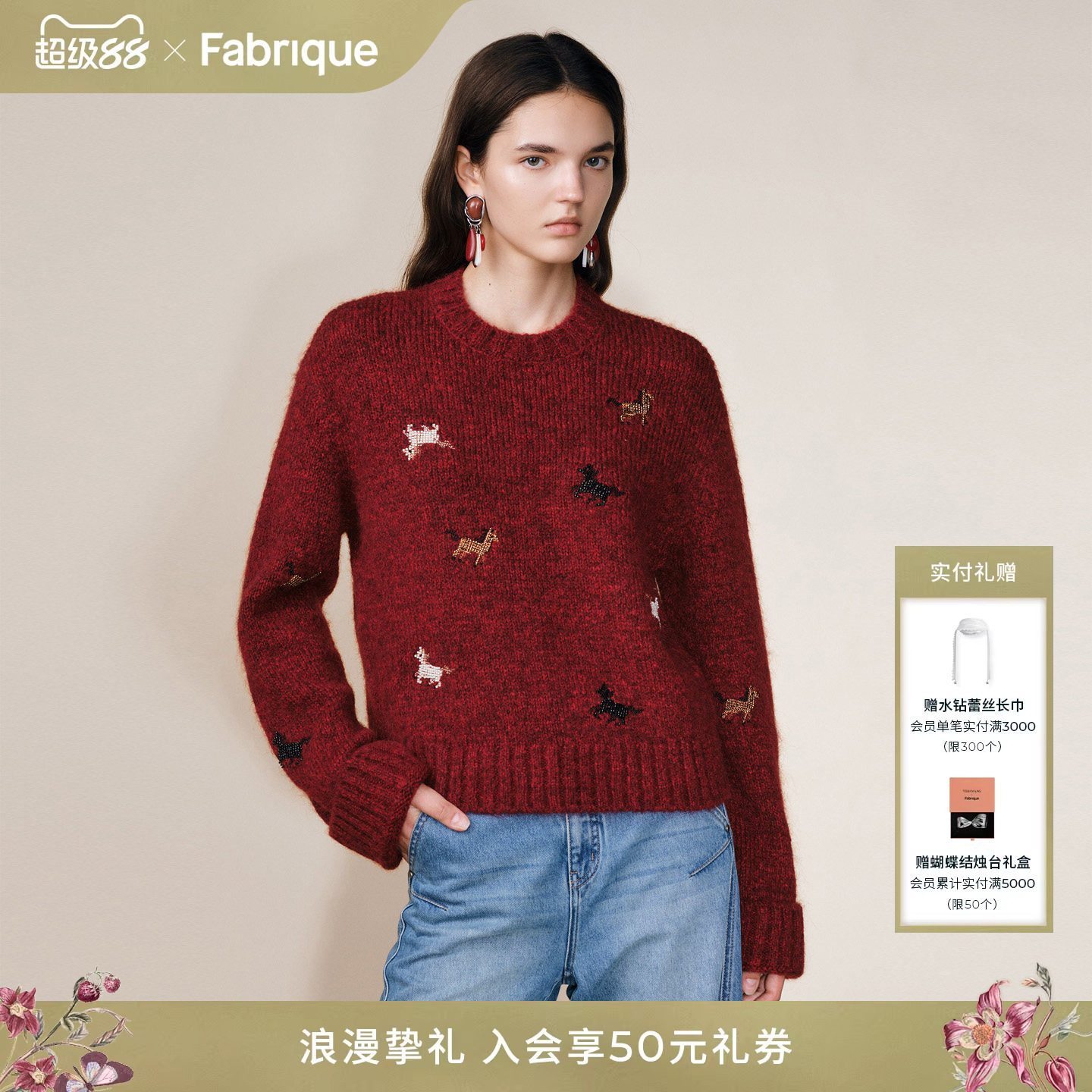 【孙颖莎同款】Fabrique马到成功生肖红色毛衣羊毛针织开衫女冬