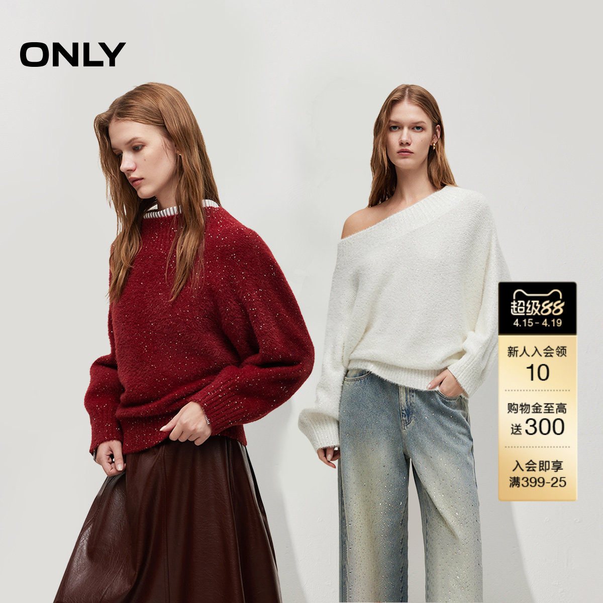 ONLY2026春季新款亮片纱线蝙蝠袖亲肤软糯红色针织衫毛衣上衣女