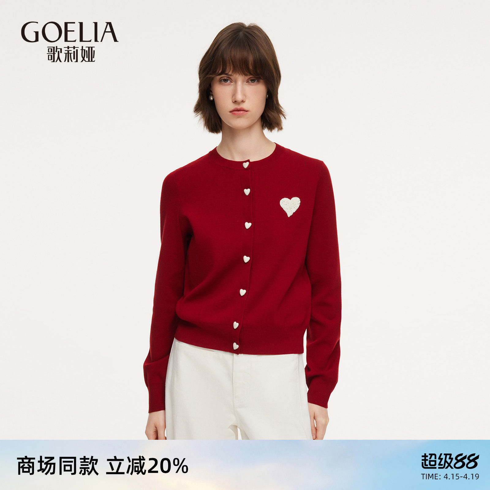 歌莉娅红色毛衣开衫女春季2026新款巨好看本命年穿搭上衣新年战袍