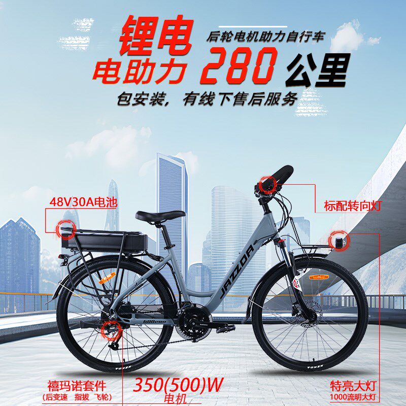捷时达JAZZDA新国标电动自行车助力铝架变N速油刹男女代步通旅行
