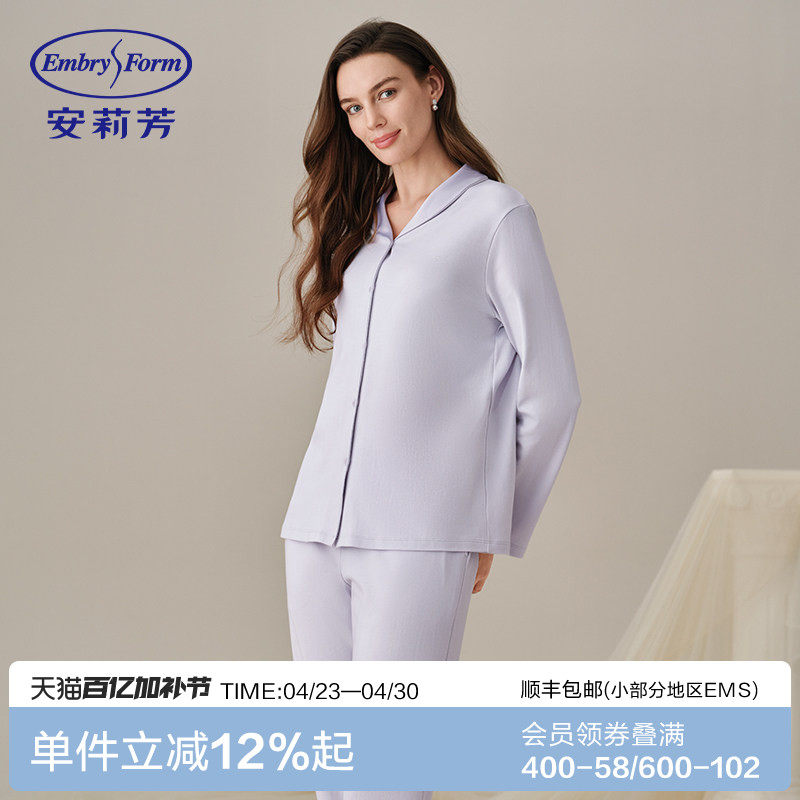 安莉芳纯棉透气新疆棉长袖春夏家居服女宽松舒适100%全棉睡衣套装