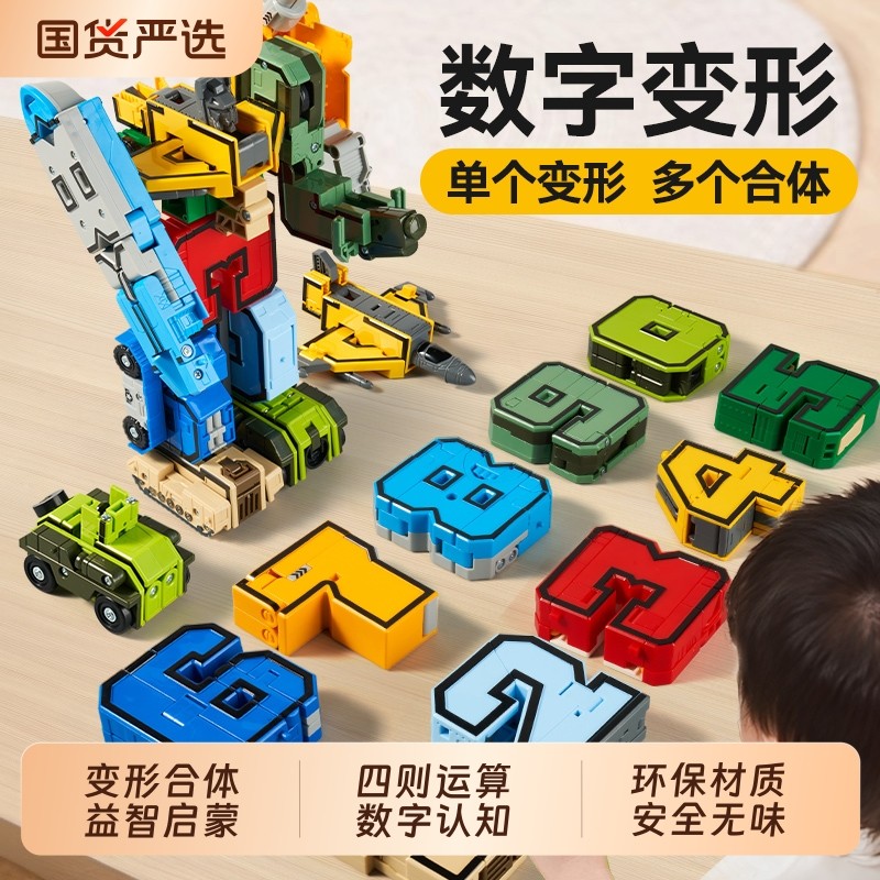 儿童益智数字变形玩具男孩3机甲机器人5金刚6字母4生日礼物8加大7