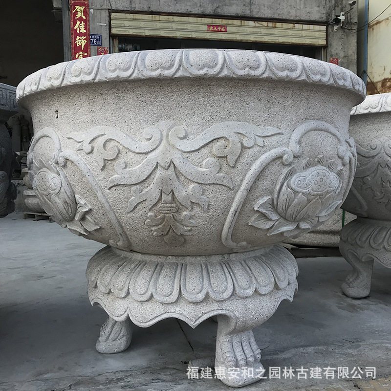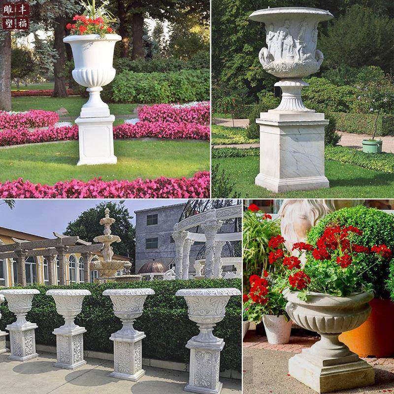 石材花盆 园林园艺装饰大理石雕刻花钵 公园景观落地石雕花钵摆件