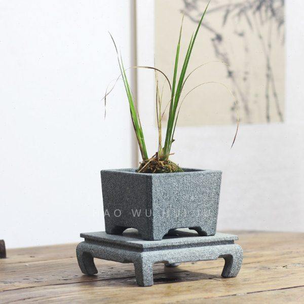 青石盆小菖蒲文竹专用方形石材花盆现代办公简美素雅装饰微型花器