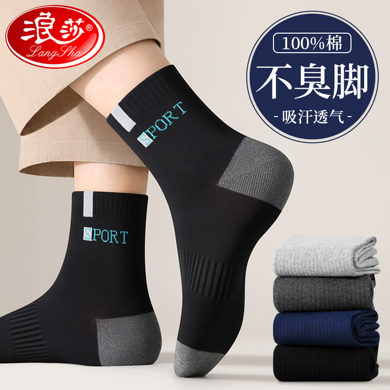 浪莎袜子男士春秋纯棉吸汗防臭中筒100%全棉袜长筒袜子鞋男袜冬季