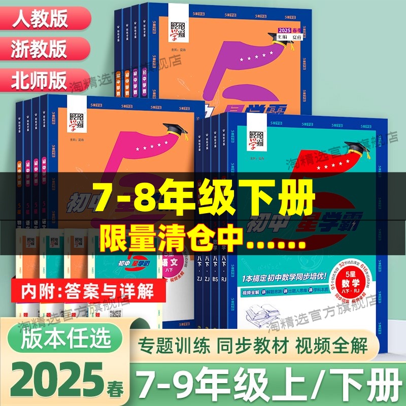2025初中五星学霸七年级下册八年级下册英语文数学物理人教版浙教版初一二三初中数学辅导书同步训练资料教材书思维训练学霸5星