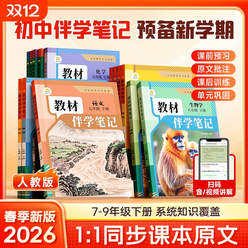 2026春 初中教材伴学笔记人教版八年级下册英语文数学北师七年级九年级下册物理化学同步课本笔记原文讲解h课前预习寒假衔接预复习