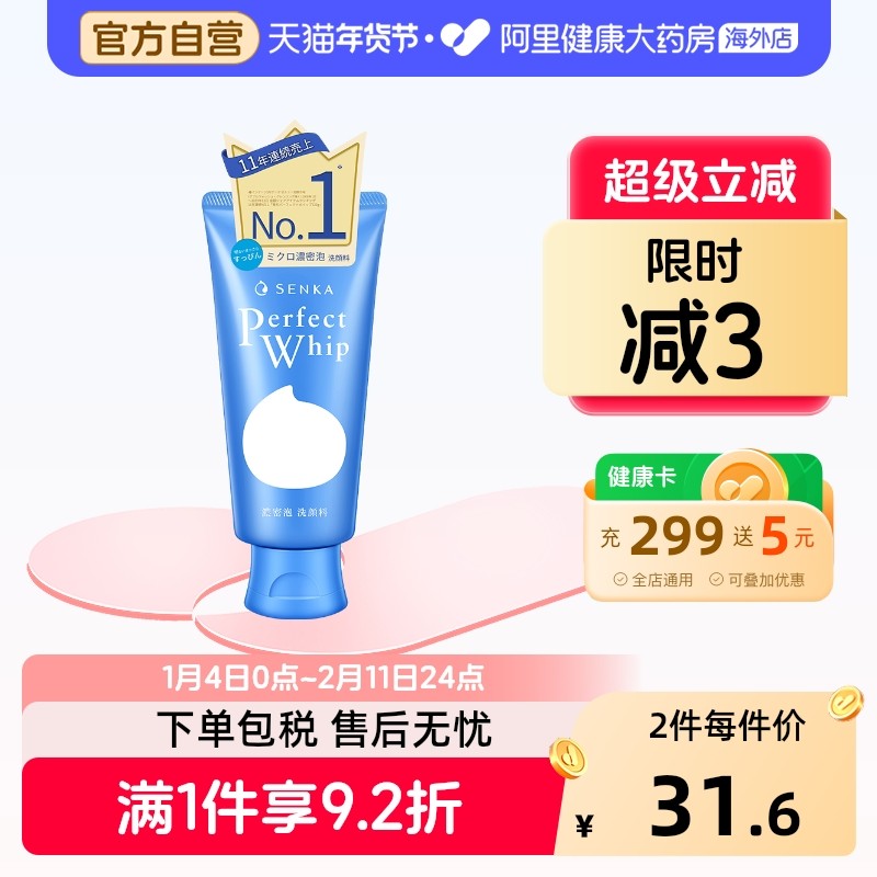 资生堂SENKA珊珂洗面奶120g洗颜专科深层清洁绵泡沫蚕丝洁面乳2支