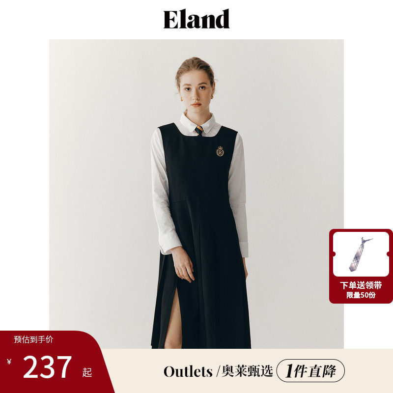 Eland衣恋西装连衣裙女中长款学院风减龄刺绣徽章裙子长外套