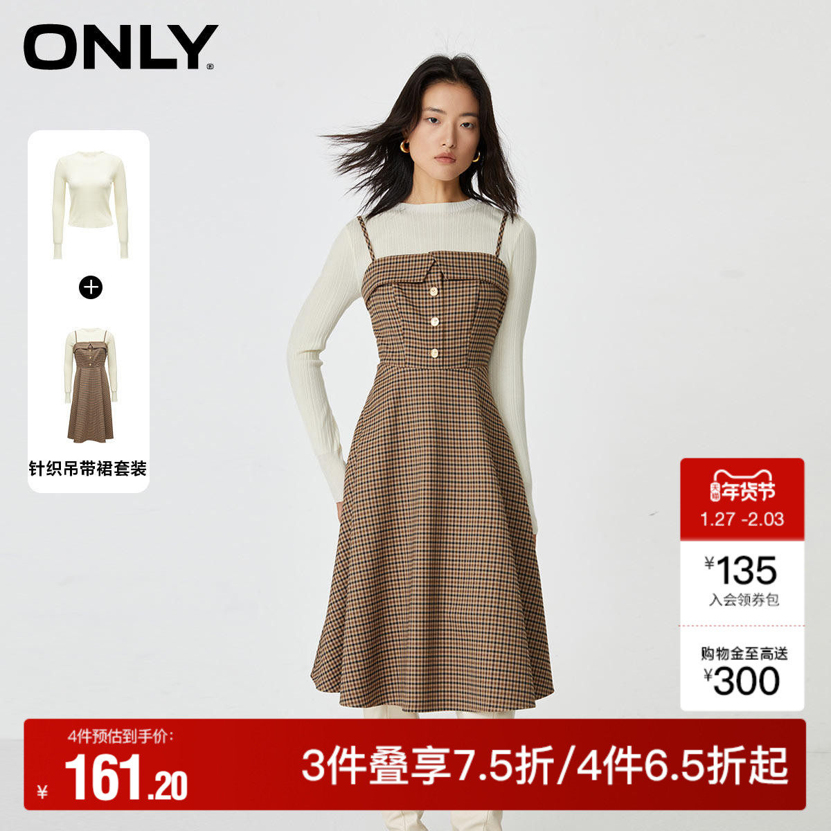 t区绫致ONLY秋冬新学院风圆领套装中长款A字连衣裙女时尚潮