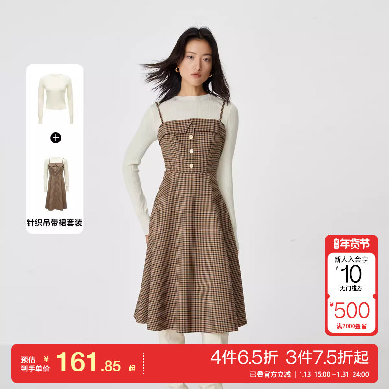 诗凡黎学院风棕色格纹背心连衣裙收腰中长款裙女伊芙丽outlets店