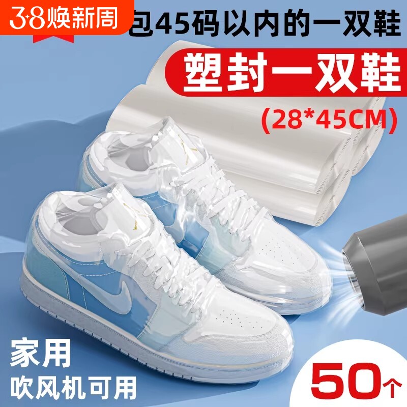 装鞋子收纳袋神器热缩膜吹风机可用塑封膜防潮防尘鞋套防氧化密封