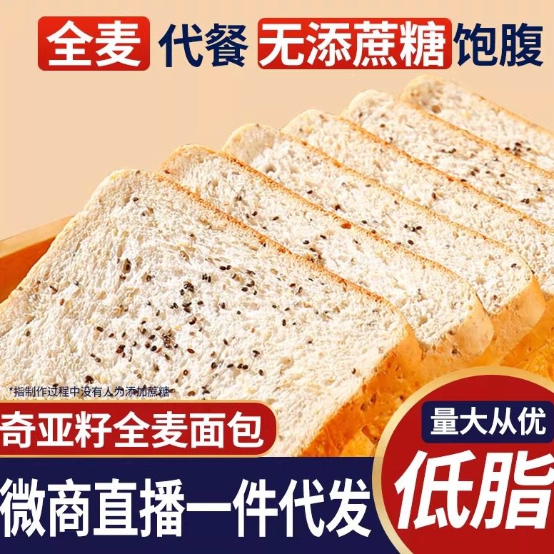 低脂奇亚籽全麦面包吐司无添加蔗糖代餐饱腹早餐老人食品粗粮整箱