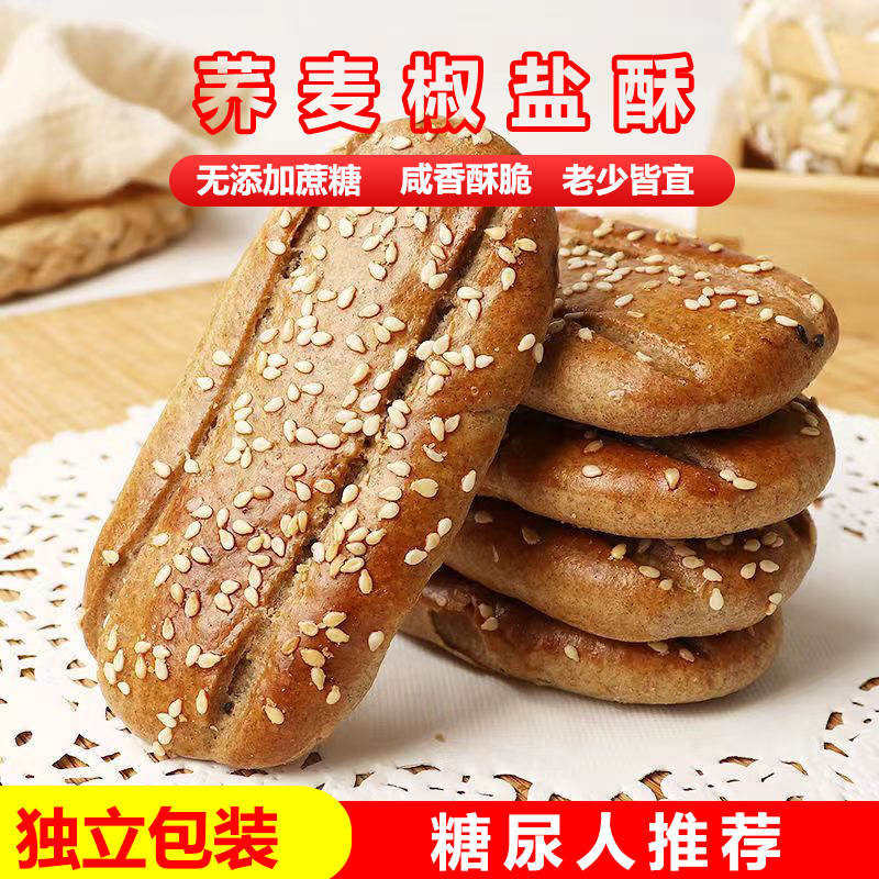 木糖醇荞麦椒盐酥无添加蔗糖饼干糕点休闲小吃无糖精尿友老人食品
