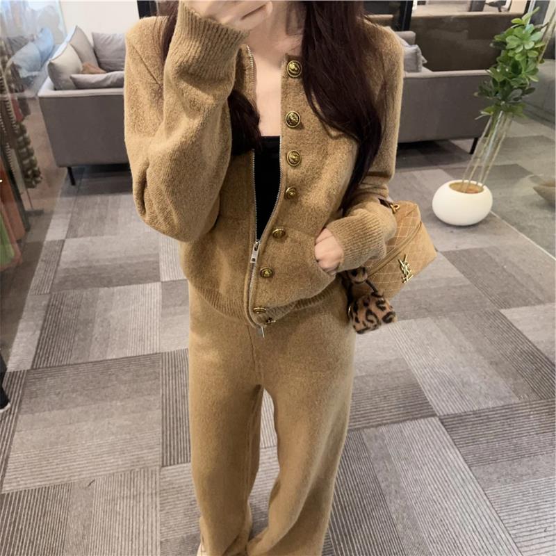 今年流行的女装套装2025新款休闲慵懒风加厚针织开衫休闲裤两件套
