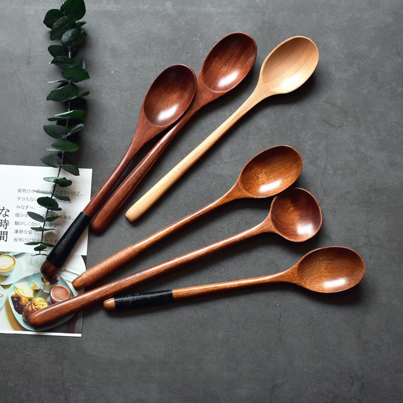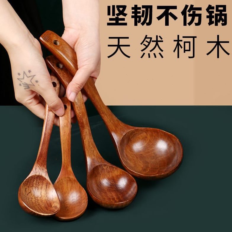 日式木质长柄木勺子 炒菜熬汤实木原木大调羹搅拌勺 家用不粘锅勺