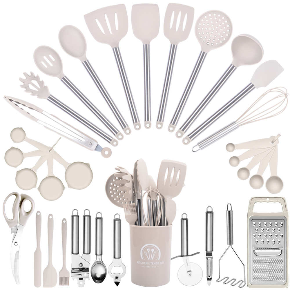 跨境现货43件硅胶烹饪厨具套x装耐热厨房小工具不粘锅勺铲餐具套
