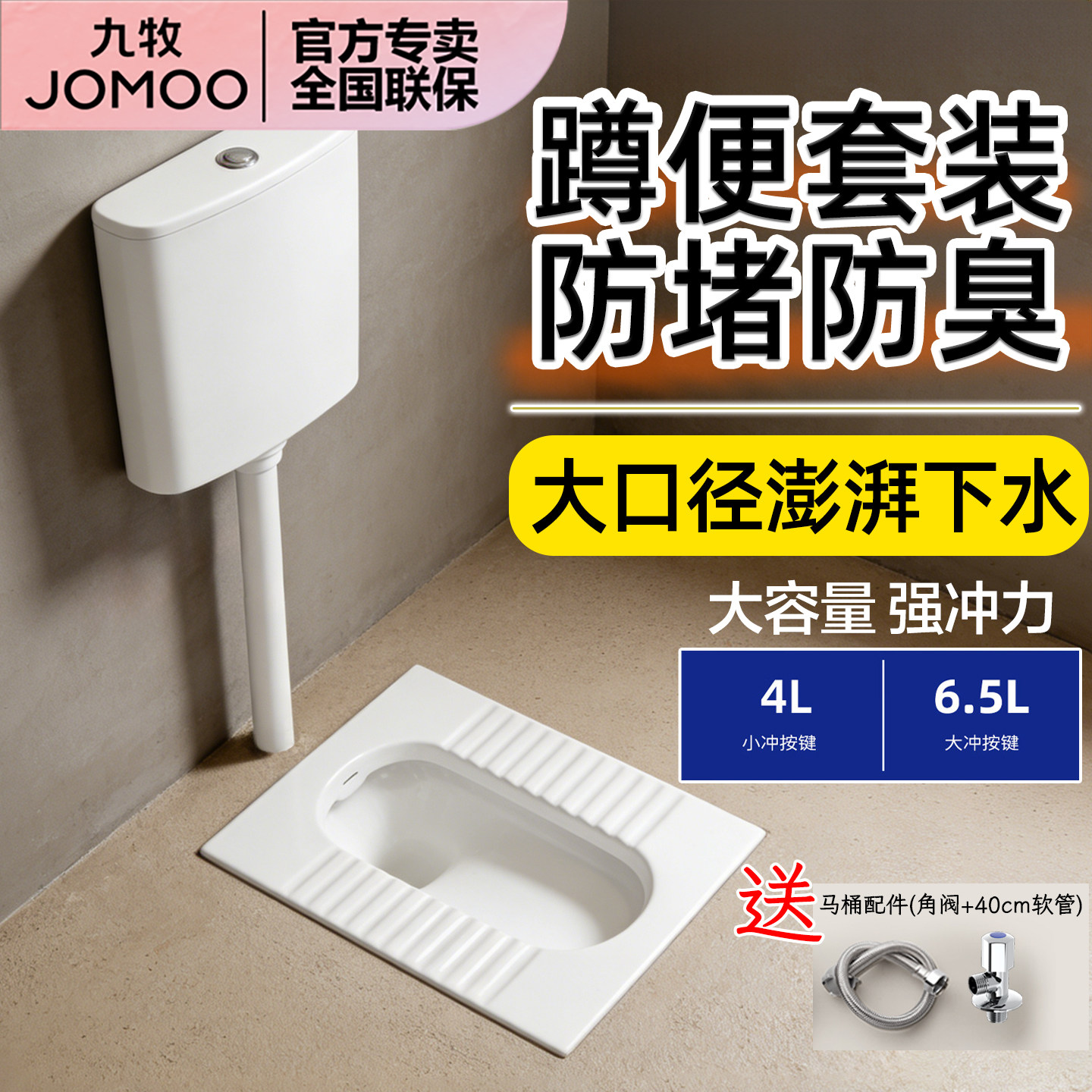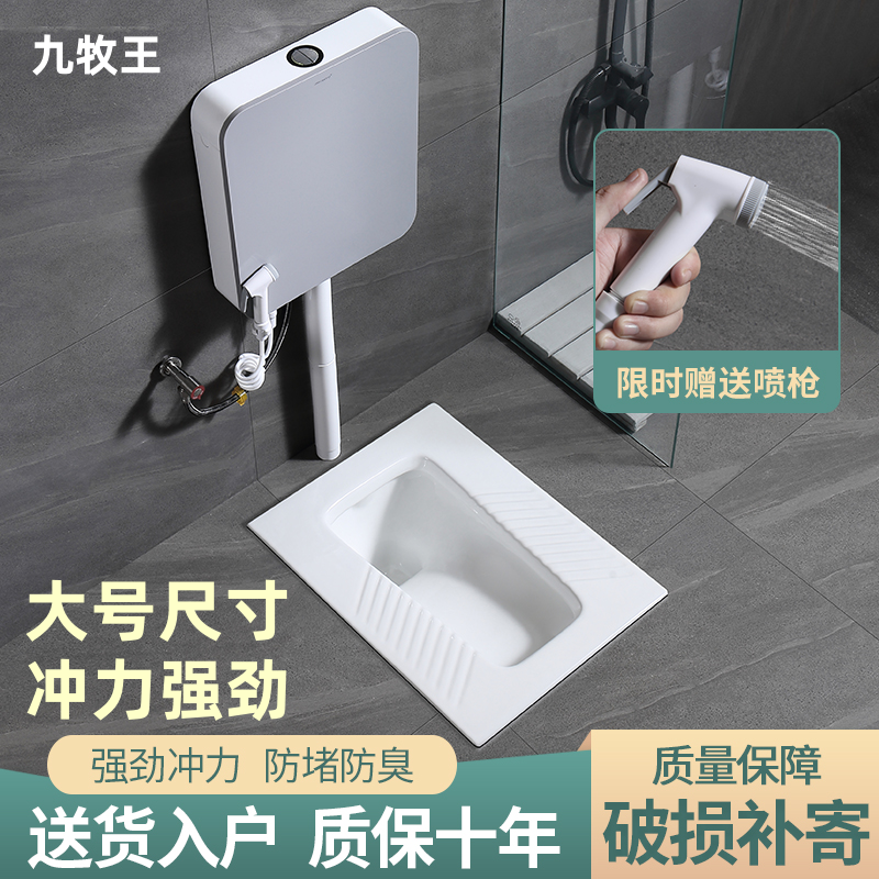 九牧蹲便器水箱蹲坑式便盆池卫生间家用防臭大便器蹲厕冲水箱套装