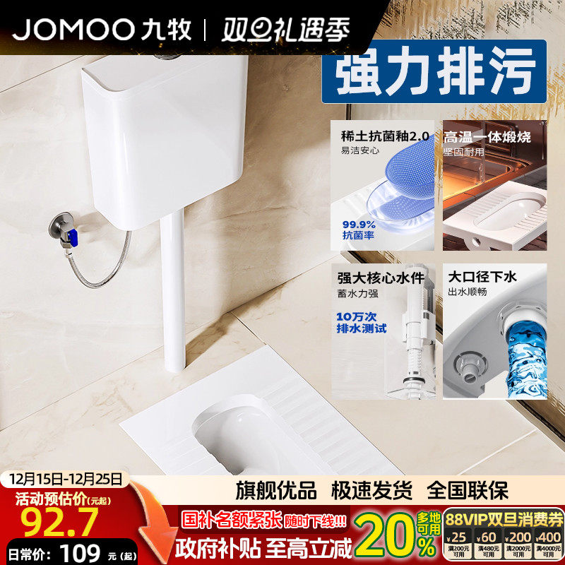九牧卫浴蹲便器水箱整套蹲坑家用蹲厕简易马桶大便器蹲便池卫生间