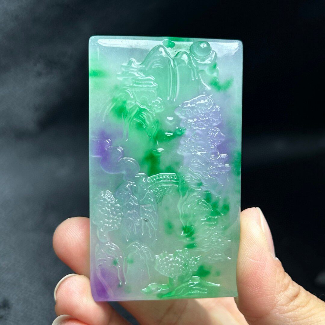 高冰种飘绿老翠玉山水意境吊牌玉佩项链缅甸老翡翠冰透毛衣链百搭